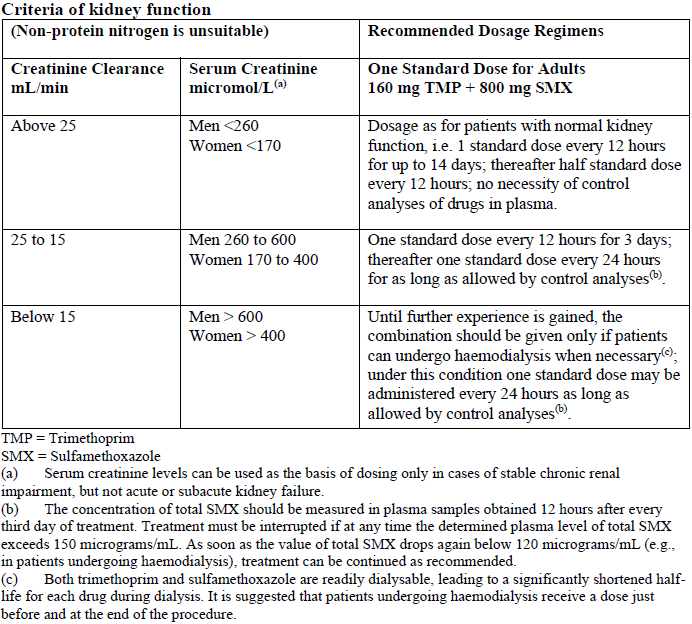 DBL Sulfamethoxazole and Trimethoprim Dosage Table 1