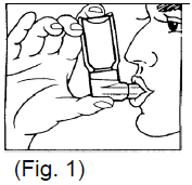 3. Hold the inhaler as shown in fig. 1, and close lips around the mouthpiece.