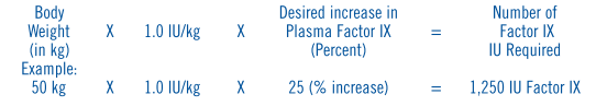 A 1.0% increase in factor IX (0.01 international units)/international units administered/kg can be expected.1, 5 The amount of Profilnine® required to establish hemostasis will vary with each patient and depends on the circumstances. The following formula may be used as a guide in determining the number of units to be administered: