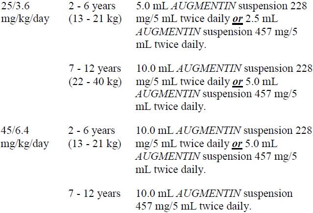 There are no clinical data for AUGMENTIN suspension 228 mg/5 mL and 457 mg/5 mL to make dosage recommendations for children under 2 months old.