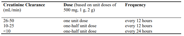Dosage Schedule for Adults with Impaired Renal Function