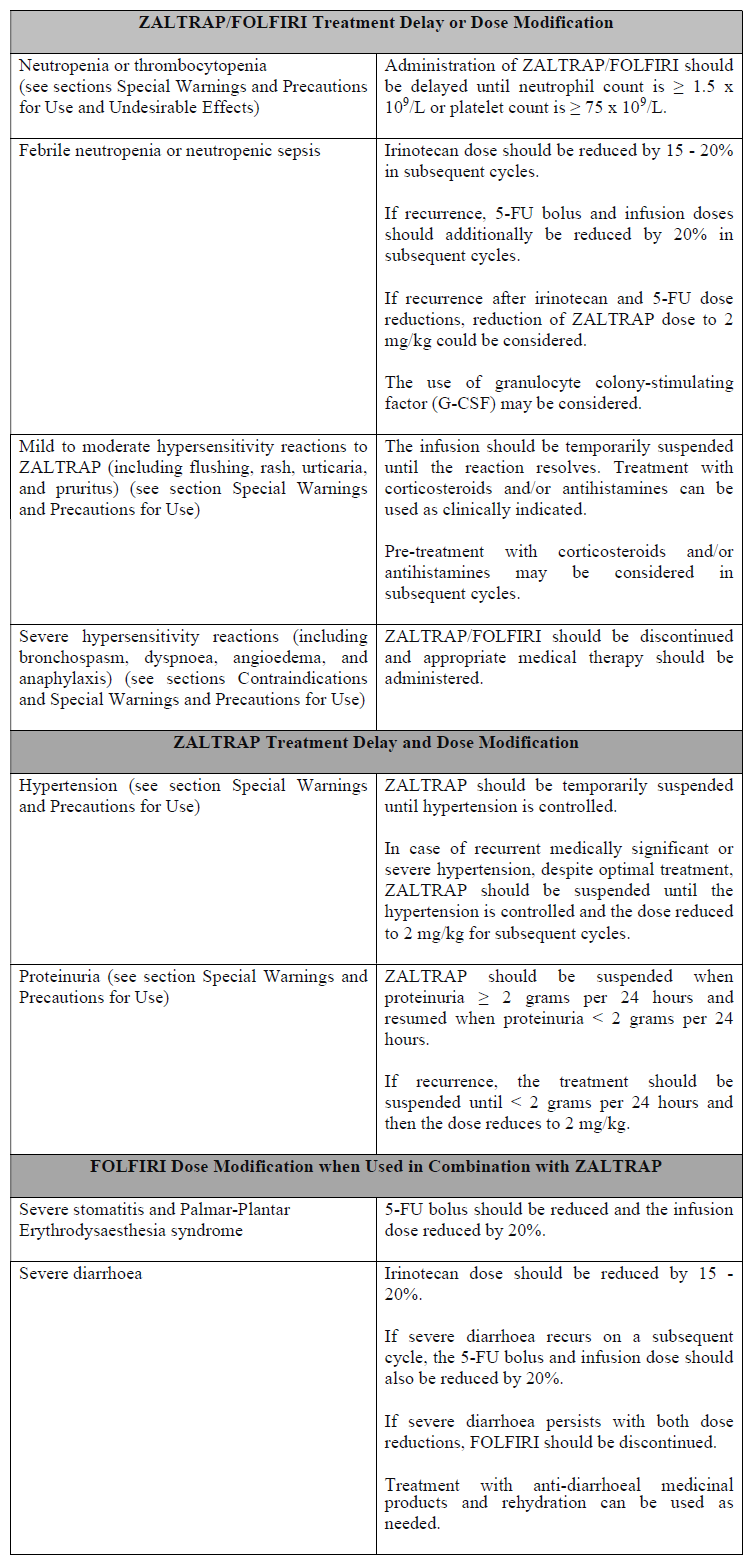 ZALTRAP should be discontinued for (see section Special Warnings and Precautions for Use – please refer to the Product Insert/Patient Information Leaflet published on HSA for the full drug information):