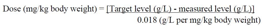 In case of surgical procedure or treatment of a bleeding episode, the dose should be calculated as follows: