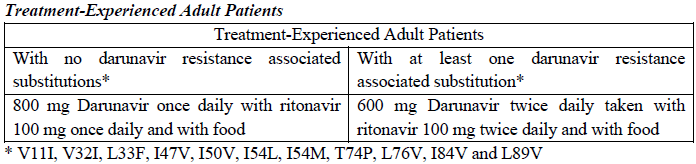 In treatment-experienced adult and pediatric patients, the following points should be considered when initiating therapy with Darunavir/rtv: