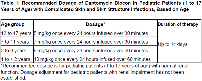Daptomycin Biocon Dosage Table 1
